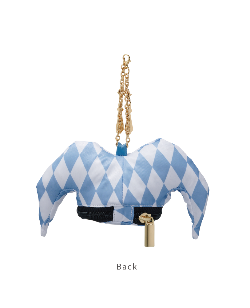 道化師の象徴のジェスターハットが可愛い小物入れになっています。メイクモチーフのチャーム2個付。